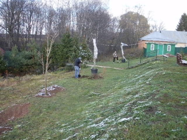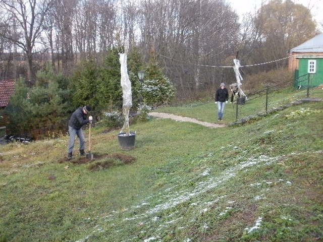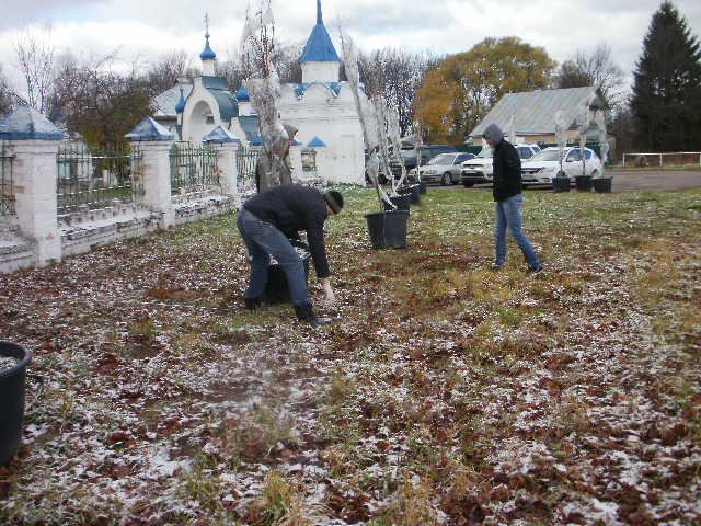 В юбилейный год 700-летия памяти прп. Сергия Радонежского и в преддверии празднования 500-летия прп. Иосифа Волоцкого молодежь нашего прихода из числа МПС «Ковчег», благочестивые прихожане и жертвователи решили не оставаться в стороне и внести свою скромную лепту в общий Праздник Руси: на территории рядом с храмовым комплексом были посажены 25 кленов. Может для кого-то и покажется странной связь этого мероприятия с памятью Святых Угодников, но вспоминаем Евангельскую притчу, повествующей о посаженном малом семени, из которого выросло большое дерево, в ветвях которого укрывались птицы небесные. Были высажены две аллеи – одна перед храмом вдоль главной дороги, вторая — по пути от храма к святому источнику. Даже малое, но доброе дело не пропадет, и как знать, быть может, Игумены Земли Русской пройдут и по нашим кленовым аллеям, обходя дозором свое Отечество.