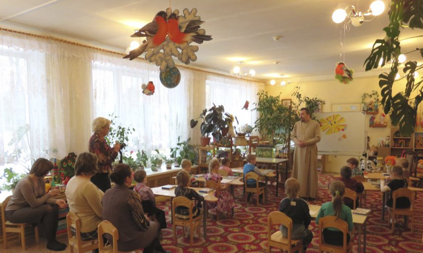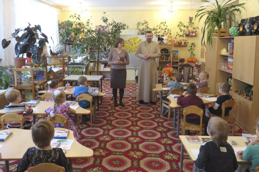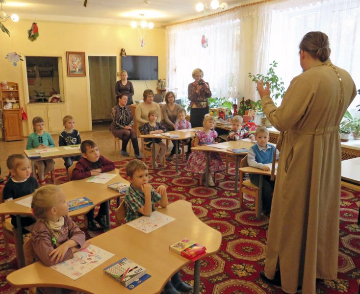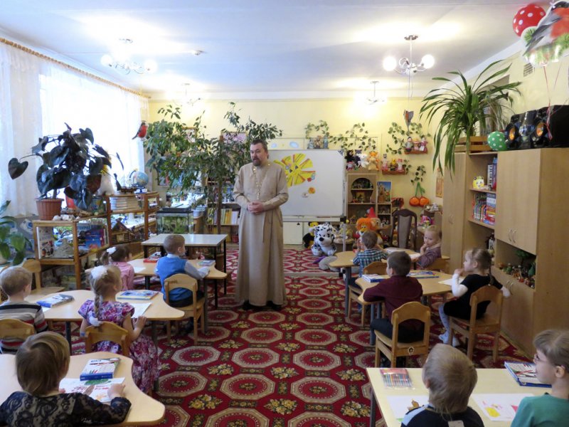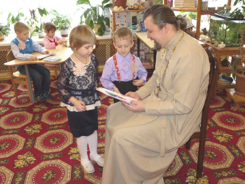Накануне Международного дня православной молодежи настоятель Введенского храма протоиерей Константин Попов и приходская молодежь из числа членов МПС «Ковчег», взаимодействующего с приходом, посетила МДОУ №9 г. Волоколамска. О. Константин поздравил всех с Праздником Сретения Господня, тепло пообщался с детьми, отметив ту искреннею чистую веру в детском сердце, которая является для нас взрослых примером духовной ответственности в жизни, тем более в свете проходящего в настоящее время во многих областных учреждениях месячника культурного и вежливого общения. Дети рассказали о своих занятиях в саду и подарили батюшке на память рисунки.