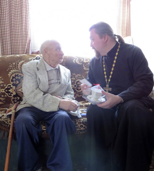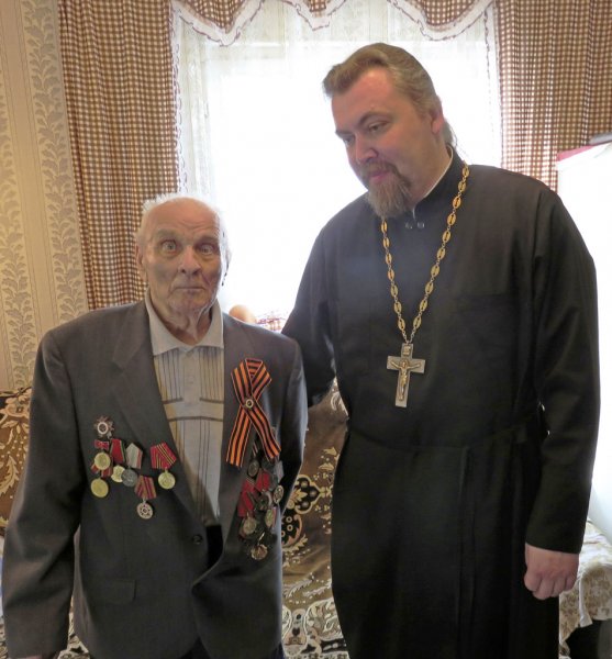 Накануне праздника Великой Победы настоятель Введенского храма с. Спирово протоиерей Константин Попов и ответственный за просветительскую деятельность в приходе, кандидат исторических наук Павел Балдин посетили ветерана Великой Отечественной войны Ивана Егоровича Макарова. В свои почти девяносто лет Иван Егорович занимательно рассказал молодому гостю в мельчайших подробностях о своих героических подвигах участия в сражениях и битвах за родную землю в годы войны. Поведал и о своей радости за милость Божию встречать в крайне преклонном возрасте, но в добром здравии и нынешний Юбилей Победы. А после также вспомнил и о своих приходских послушаниях на церковной ниве более чем двадцатилетней давности, когда о. Константин только начинал свой путь священнического служения, а крепкий тогда еще прихожанин-ветеран помогал ему в приходской деятельности. Поблагодарил он гостей за памятные подарки и особо батюшку за преподнесенную ему святую просфору.