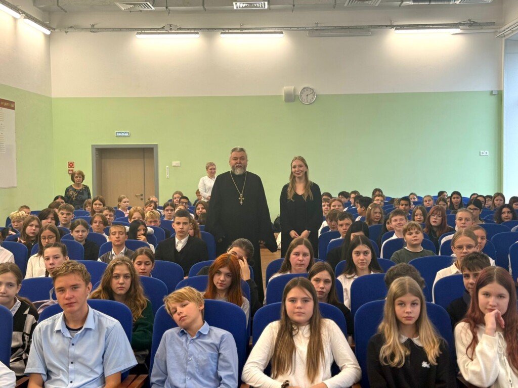 30 октября настоятель Введенского храма с. Спирово, член епархиального миссионерского отдела протоиерей Константин Попов, принял участие во встрече, посвященной празднику Дня народного единства, в окормляемом учебном заведении МОУ СОШ 2 г. Волоколамска. Экскурс в историю данного праздника, используя методические материалы, составленные Синодальным миссионерским отделом, провела педагог школы, преподаватель истории и обществознания Карпухина В.В.