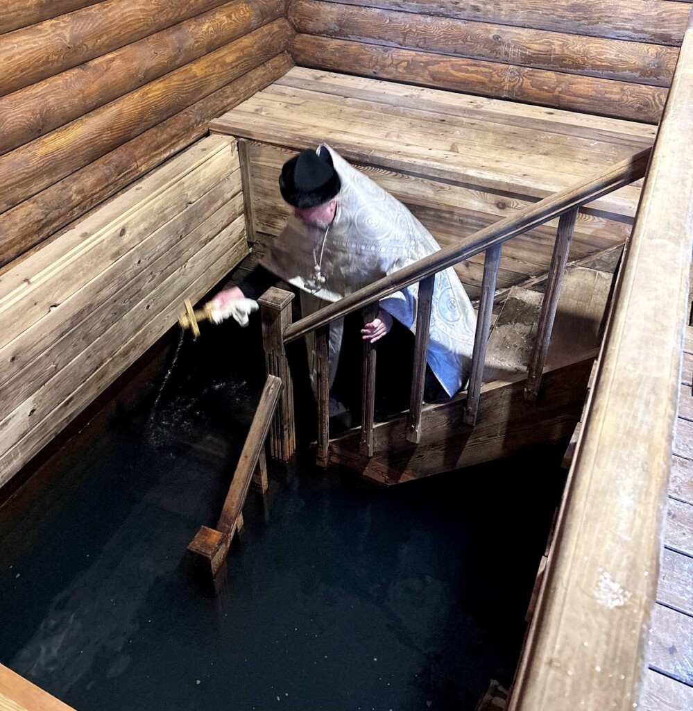 В сочельник Крещения Господня были совершены Божественная Литургия и великое освящение воды. После молящиеся совершили крестный ход к святому источнику.